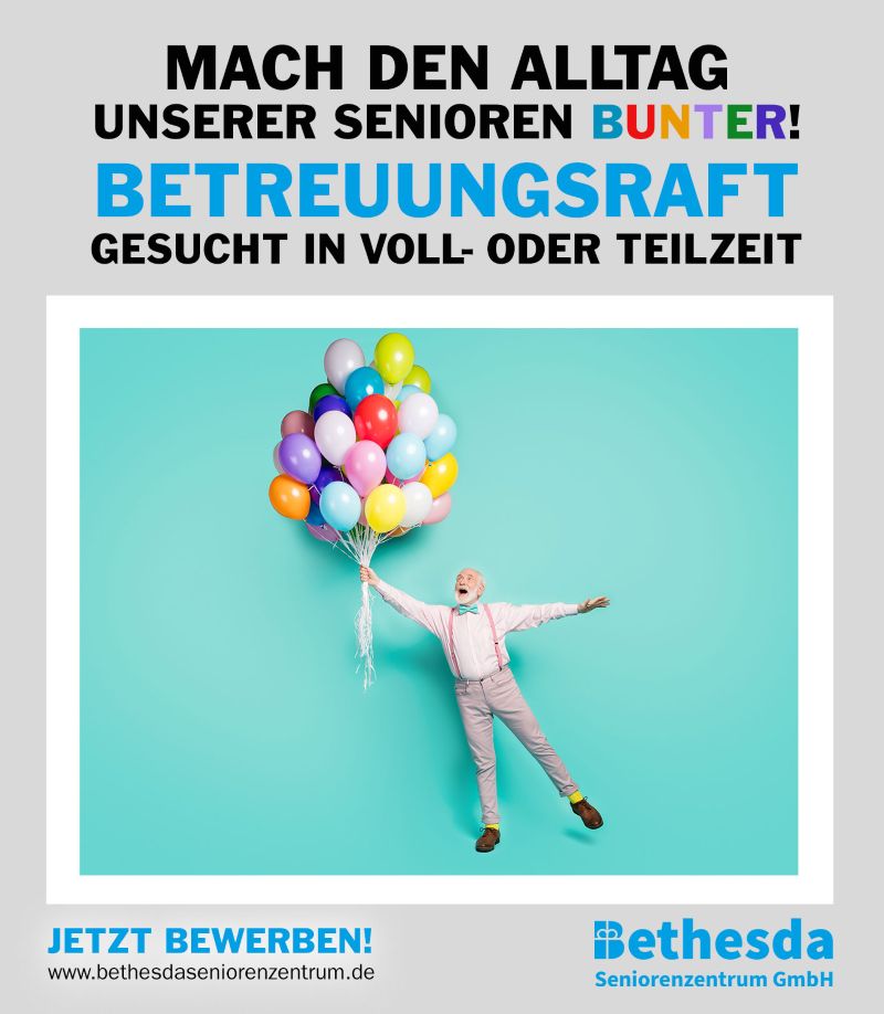 Im Bethesda Seniorenzentrum Gronau stehen die Menschen im Mittelpunkt – mit all ihren Geschichten, Wünschen und Bedürfnissen. Damit unser Alltag bunt, lebendig und voller Lebensfreude bleibt, suchen wir eine herzliche Betreuungskraft nach §43b SGB XI.